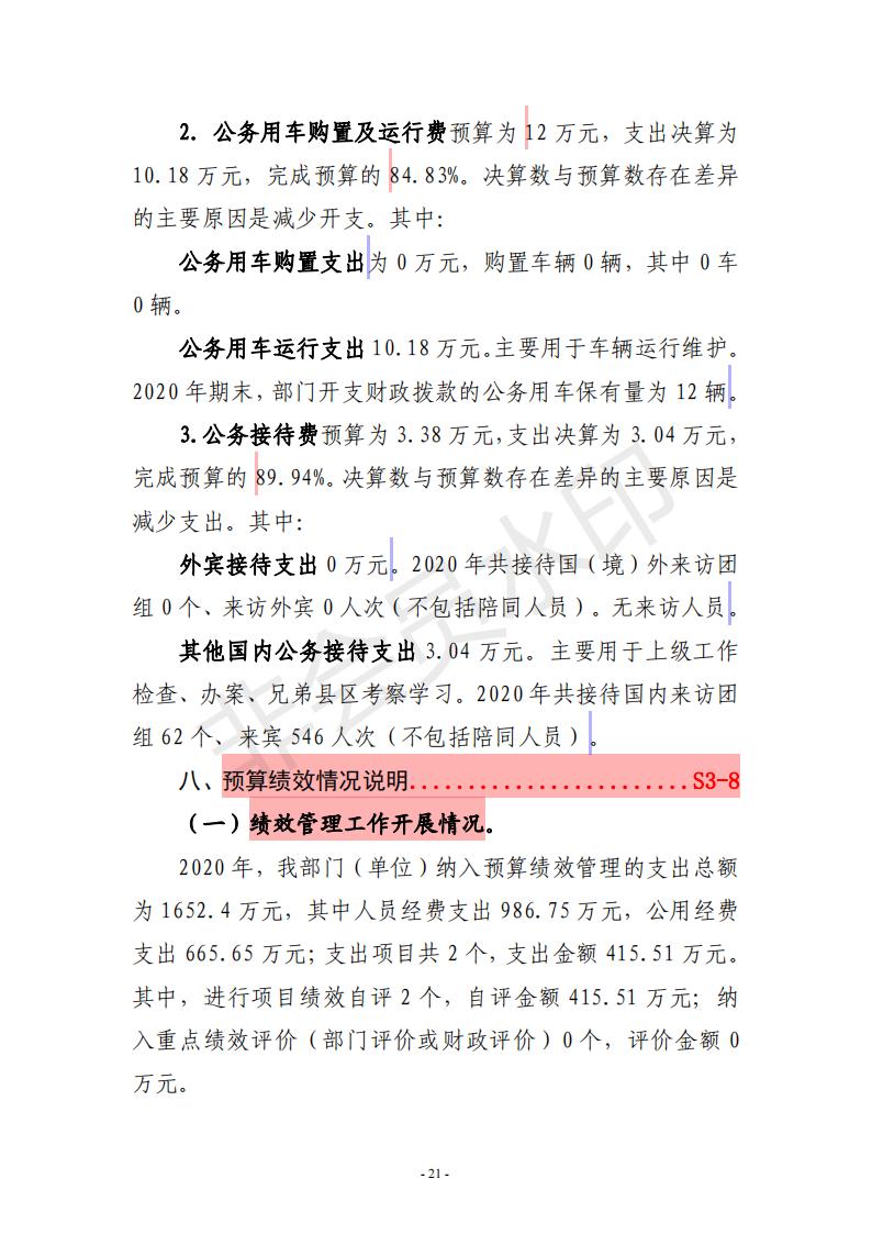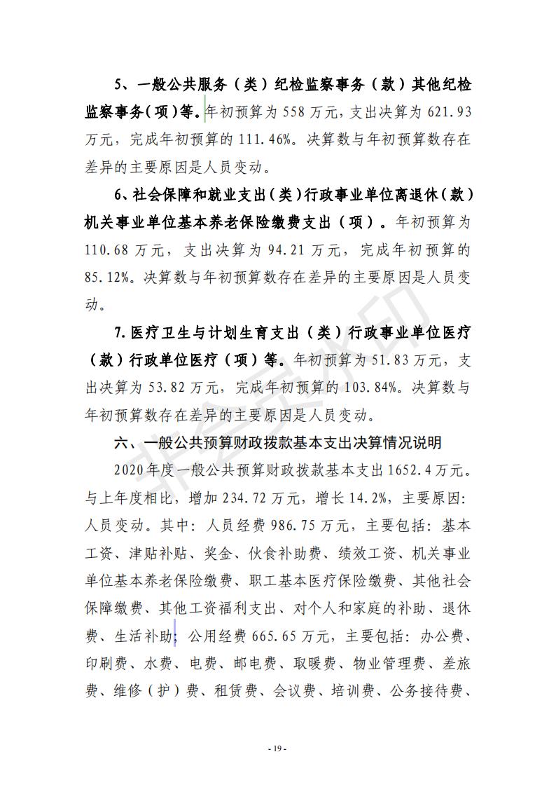汝阳县纪委监委2020年度决算公开