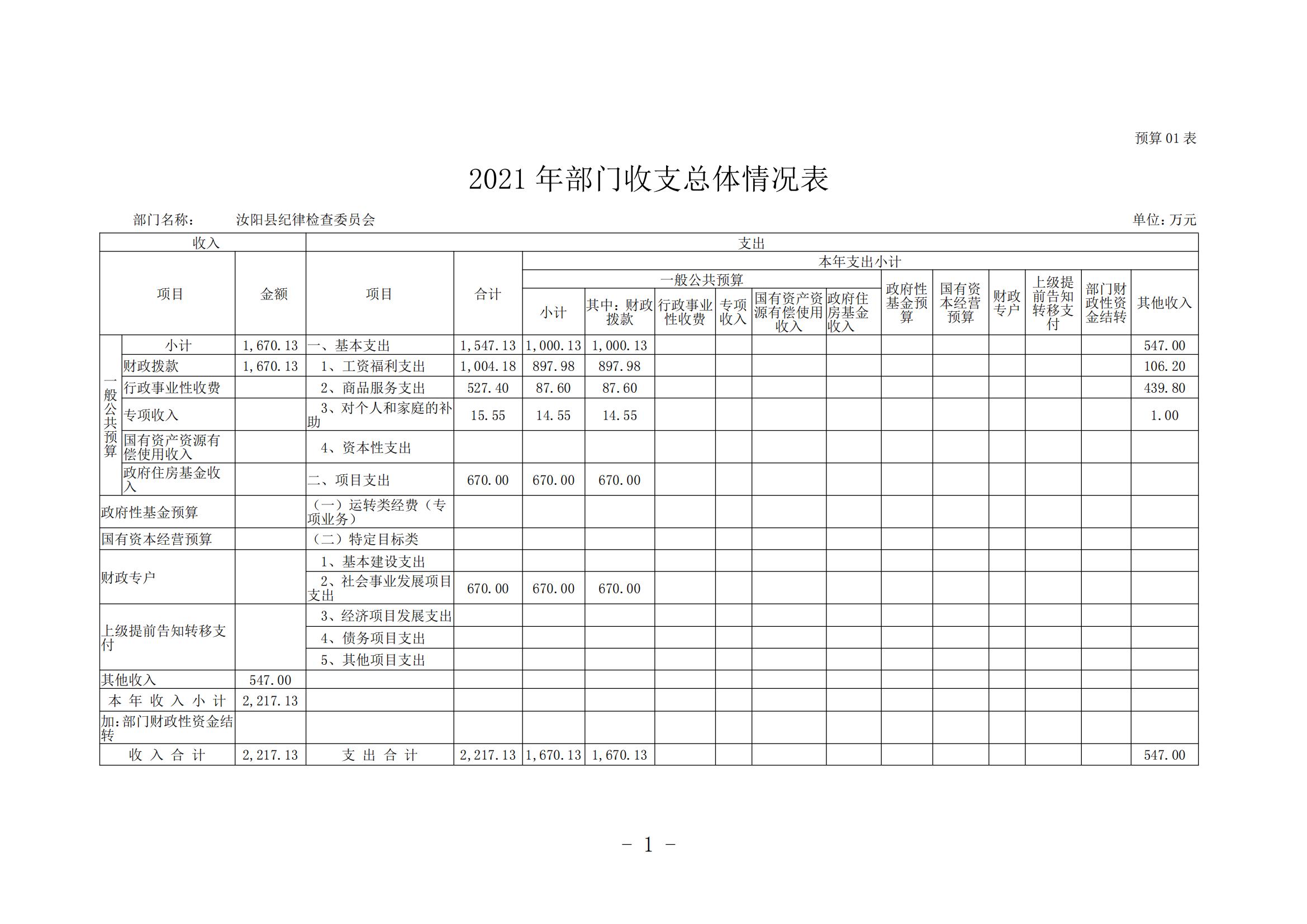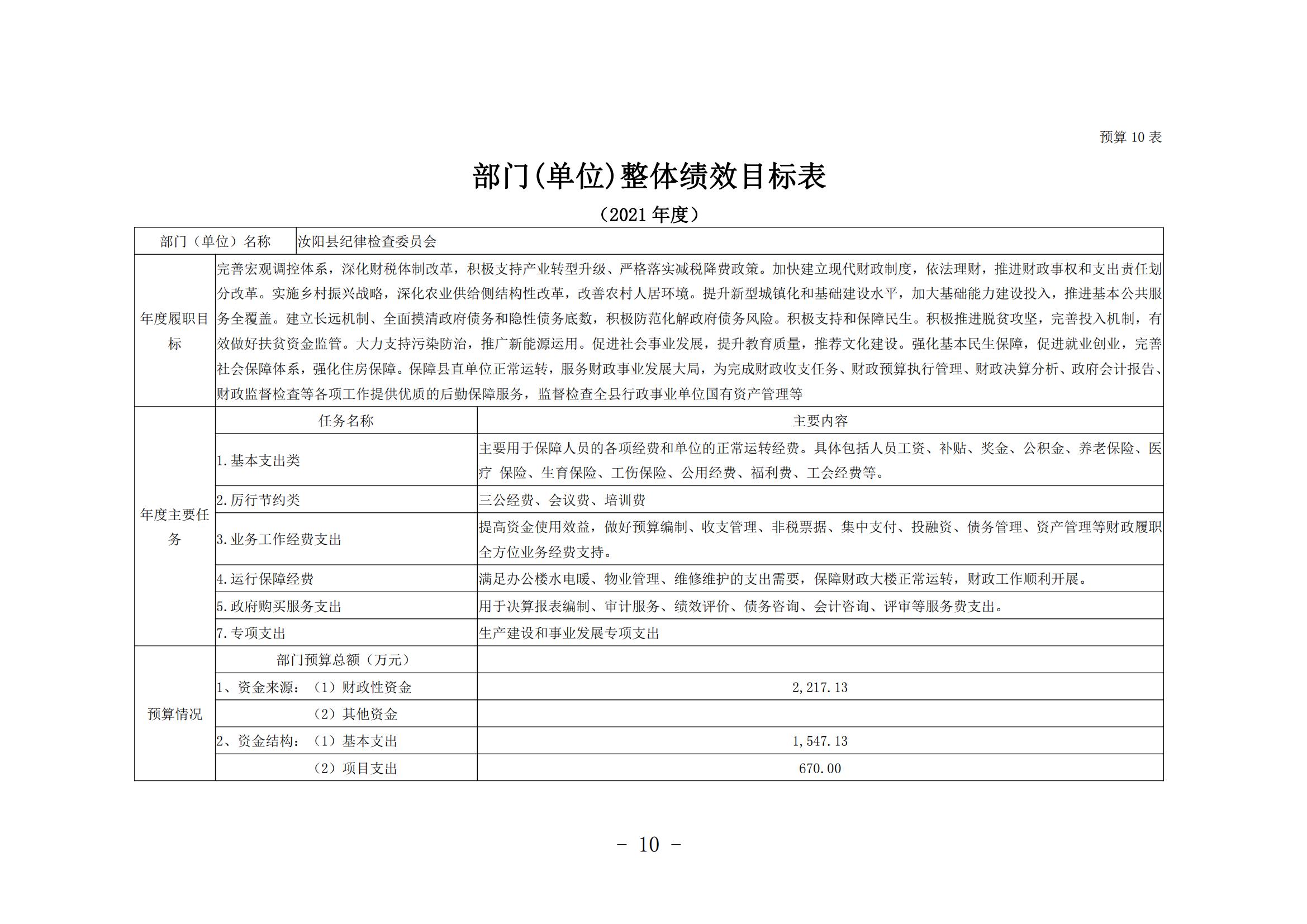 汝阳县纪委监委2021年度部门预算公开