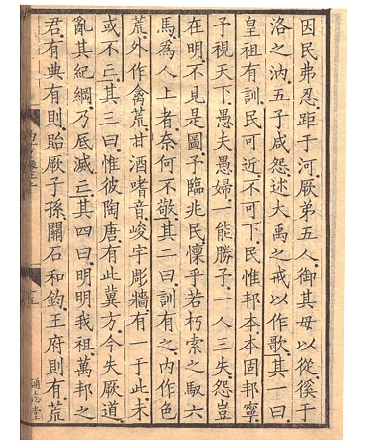 “民惟邦本,本固邦宁”出自《尚书·五子之歌》。这句话是这首歌辞的中心,表明老百姓是国家的根本,根本牢固了国家才能安宁。它不仅是上古的训诰,也体现了我国早期的民本思想。图为《尚书》清印本。 图片来源:中华古籍智慧化服务平台