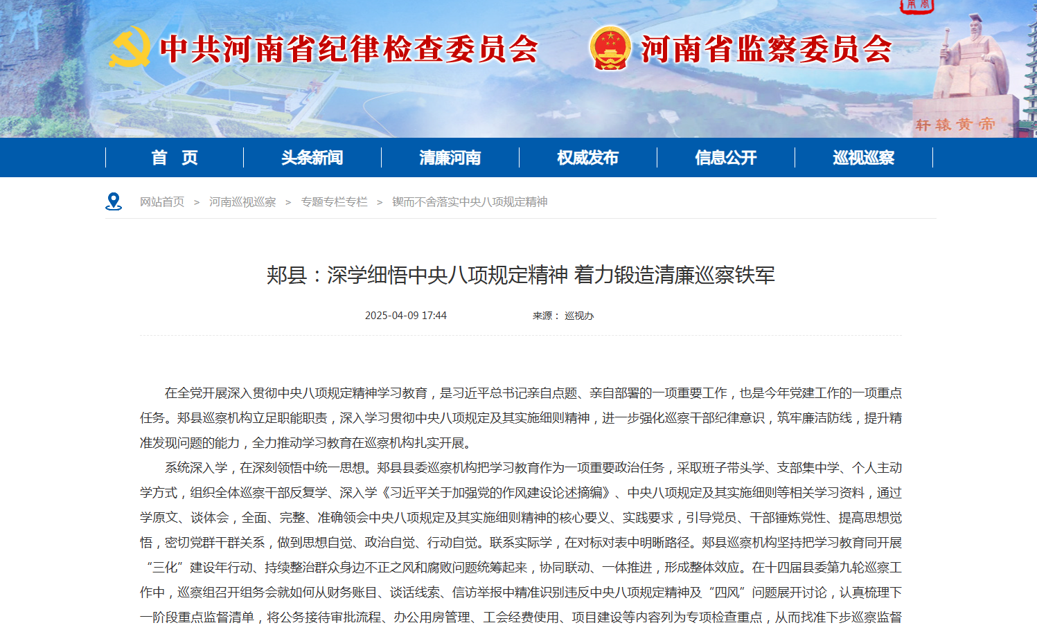 在全党开展深入贯彻中央八项规定精神学习教育,是习近平总书记亲自点题、亲自部署的一项重要工作,也是今年党建工作的一项重点任务。郏县巡察机构立足职能职责,深入学习贯彻中央八项规定及其实施细则精神,进一步强化巡察干部纪律意识,筑牢廉洁防线,提升精准发现问题的能力,全力推动学习教育在巡察机构扎实开展。