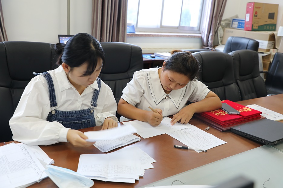 2名计票人在认真核对候选人得票数
