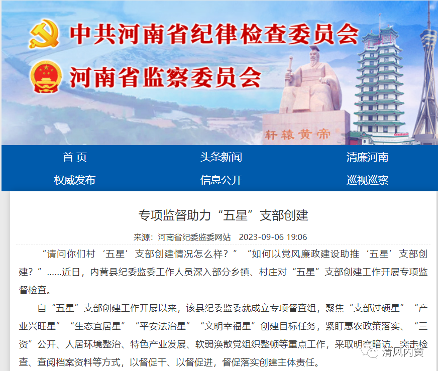 “请问你们村‘五星’支部创建情况怎么样?”“如何以党风廉政建设助推‘五星’支部创建?”……近日,内黄县纪委监委工作人员深入部分乡镇、村庄对“五星”支部创建工作开展专项监督检查。