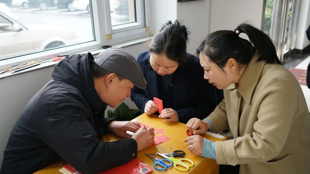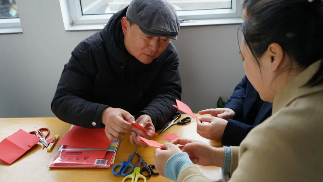 剪纸区域,老师细致讲解,手把手传授技巧,大家专注投入,手中的剪刀灵动飞舞,不一会儿,饱含祝福的生肖、象征团圆的花灯等精美剪纸作品便一一呈现。